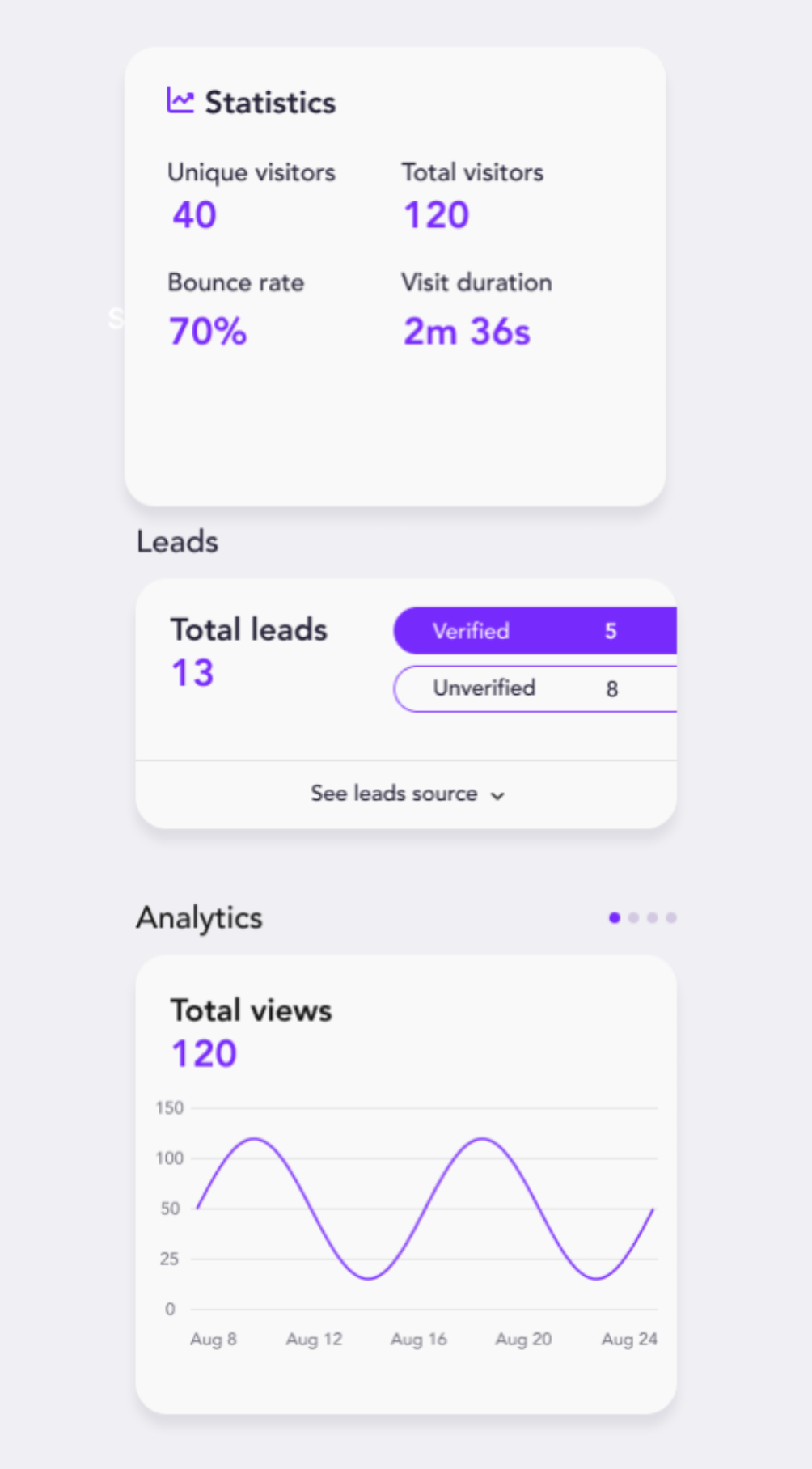 Captivate your prospects. All you have to do is share the link on Instagram, LinkedIn, or any other social platform. Let your brand be the front door everyone wants to knock on.